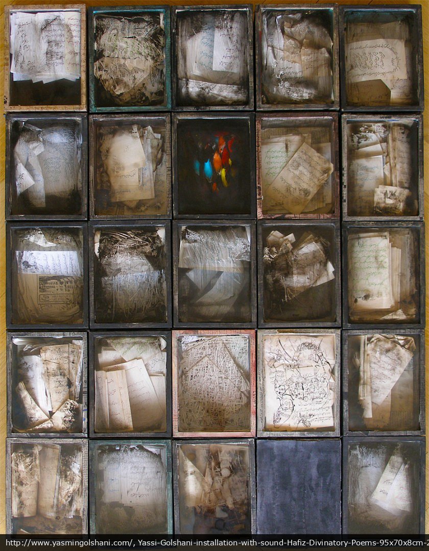 Yassi-Golshani-installation-with-sound-Hafiz-Divinatory-Poems-95x70x8cm-2002.jpg -
