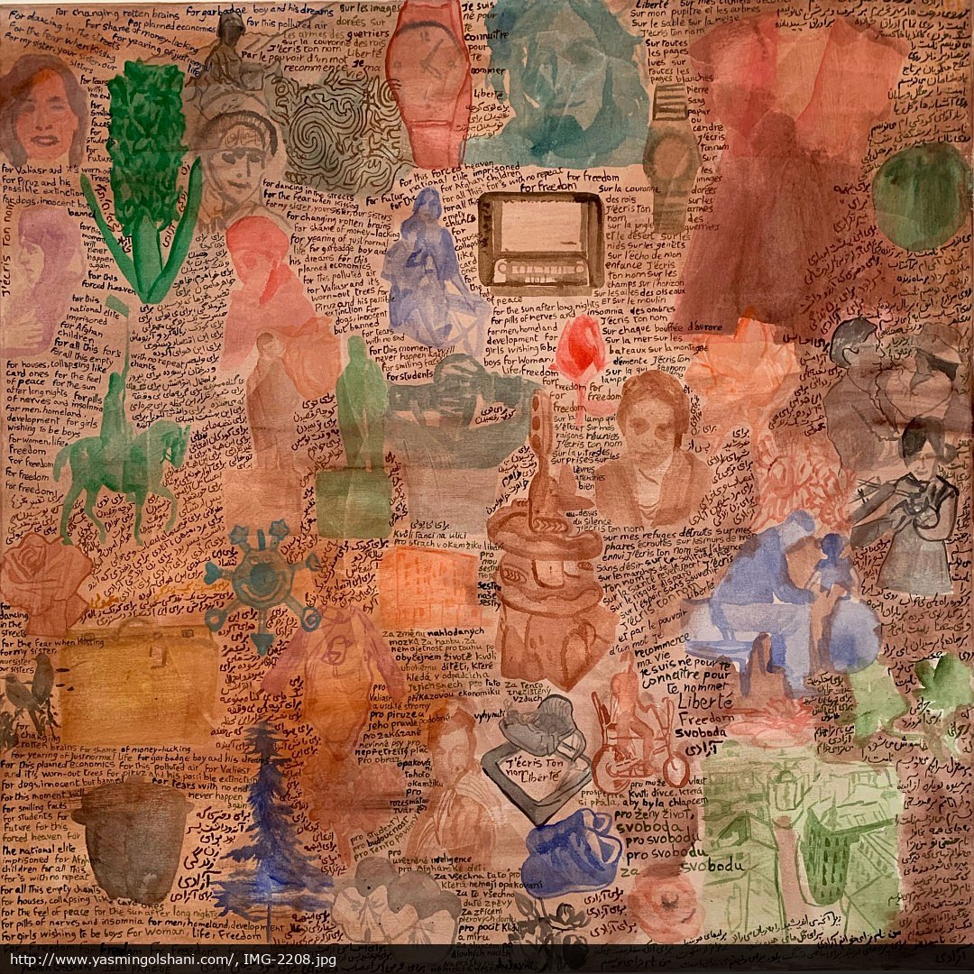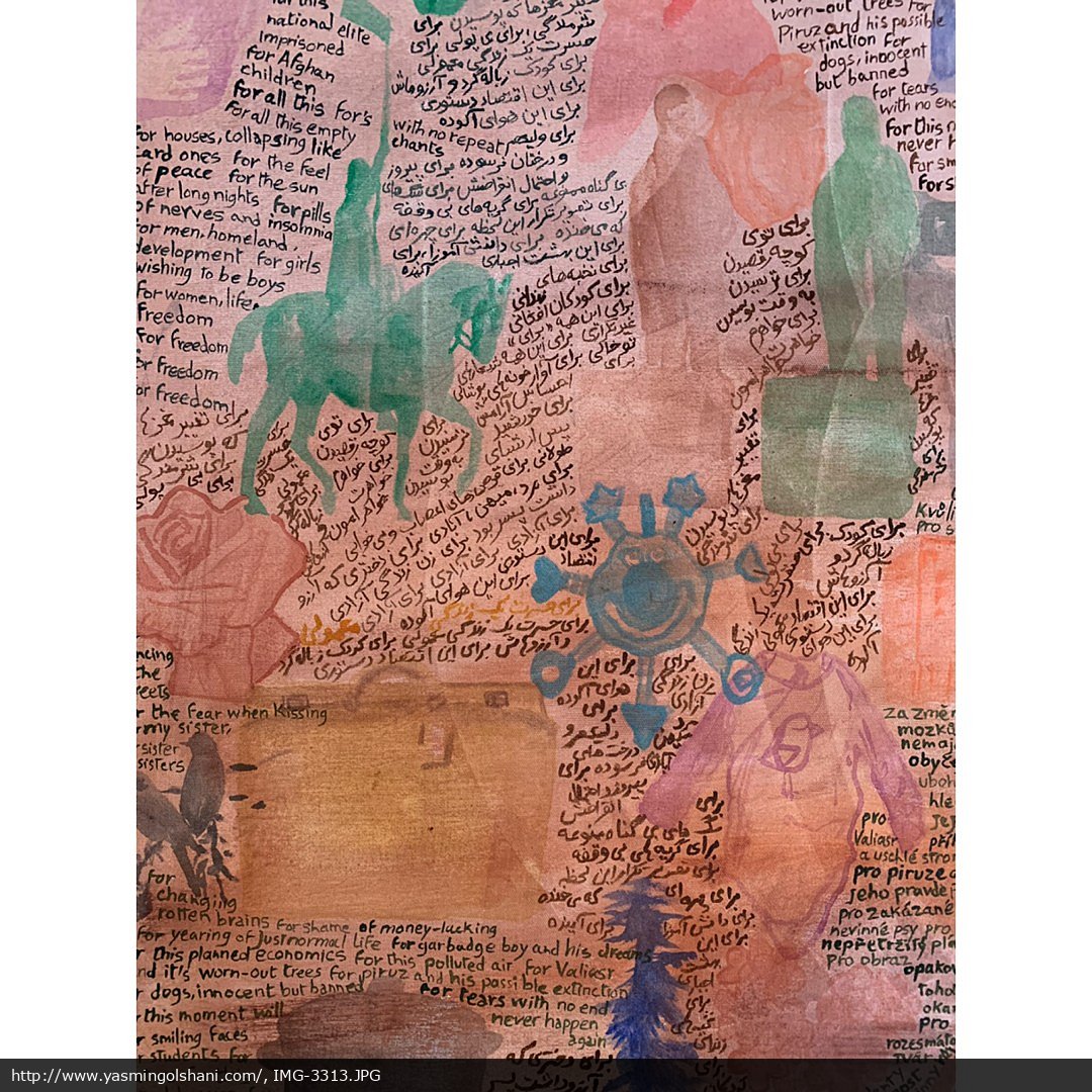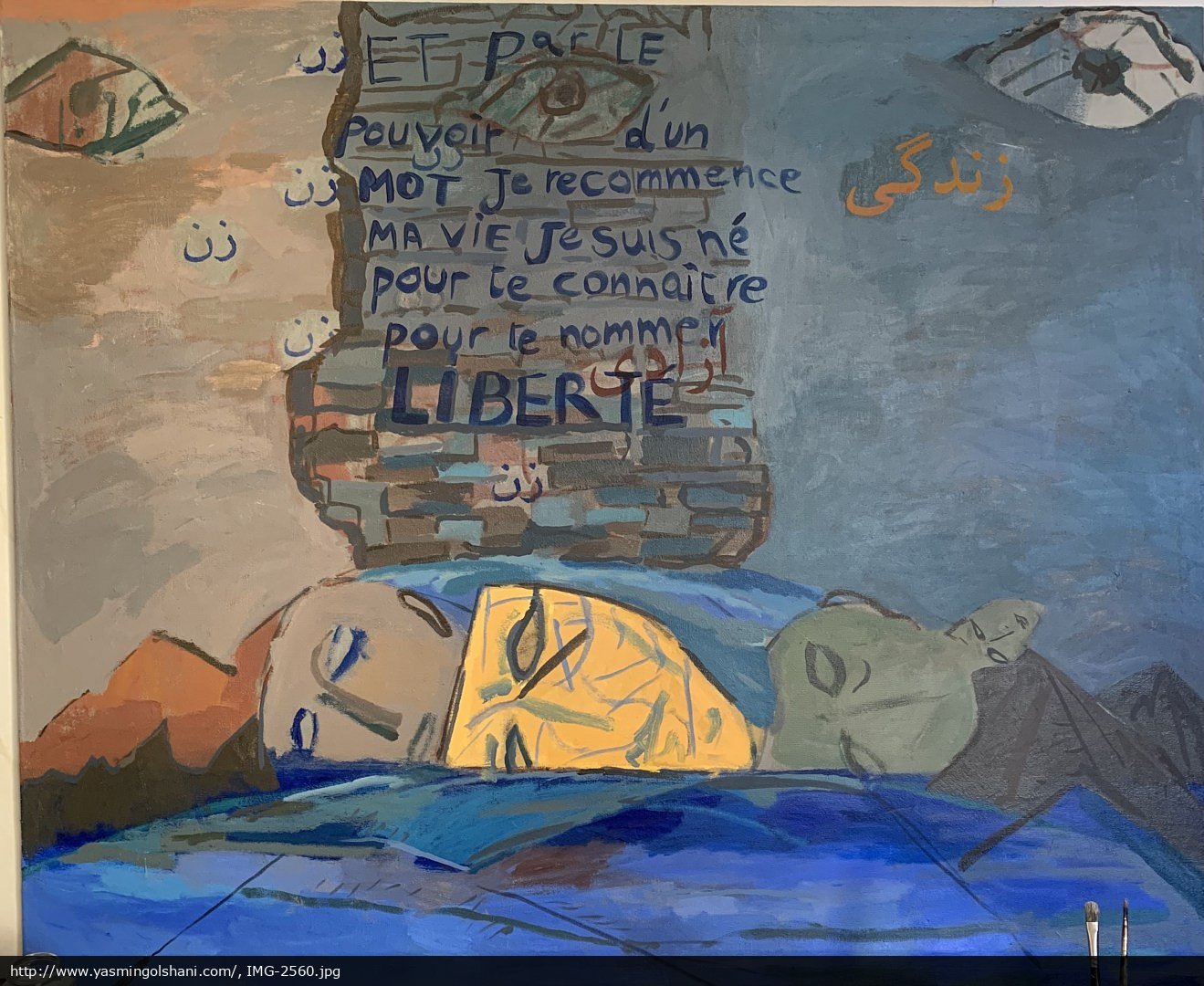 "Woman, Life, Freedom" is a collection of 100 works that has been started since 2022. It initially started as a tribute to the slogan of the protests throughout all parts of Iran after the killing of Mahsa Amini by morality police.